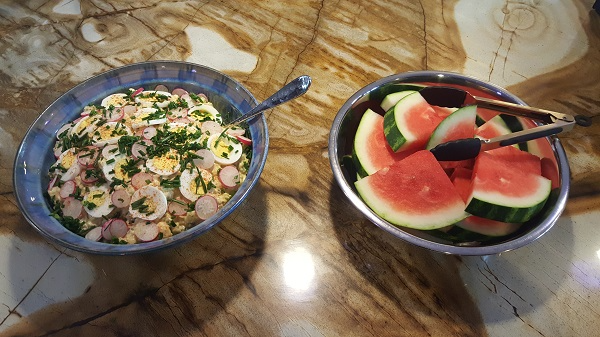 Homemade potato salad, watermelon, baked beans, scrumptious vege/cheese/fruit appetizer trays, & much, much more!
