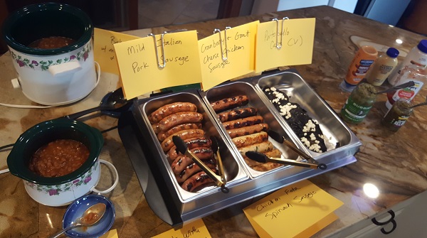 Variety grilled sausages, such as Italian, chicken feta, kielbasa, & more, grilled portabello, grilled chicken, grilled salmon, beef & turkey sliders, & more.